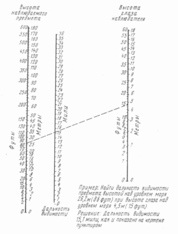 Не путать с другой спецификацией каждого маяка – цвет сигнальной лампы, частота вспышек и с какого расстояния эту лампу видно ночью. Оно указано на морских картах, но к шарообразности Земли оно никакого отношения не имеет. Всё зависит от характеристики лампы и всегда ниже расстояния определяемого днём по формуле шара».