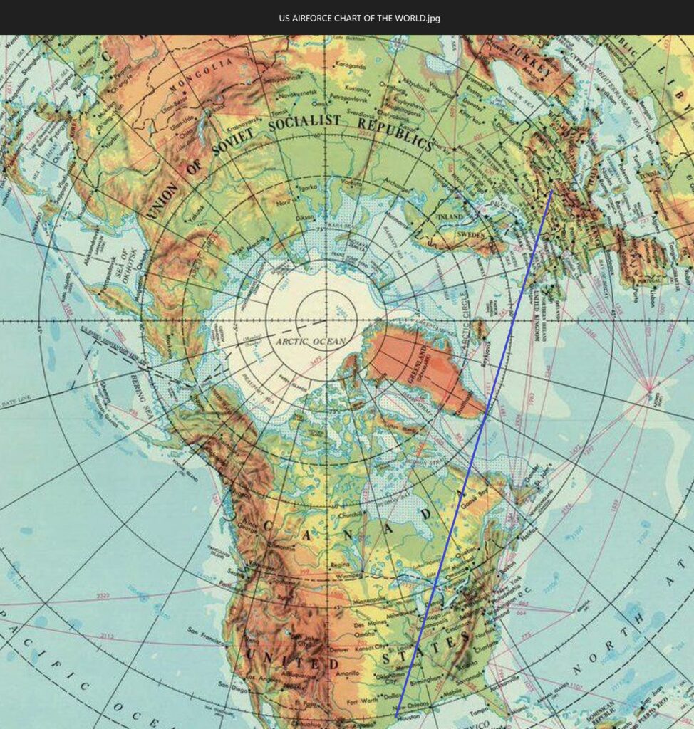 P.S. Eugene Santalov пишет: «Сегодня отслеживал рейс жены из Мюнхена в Хьюстон. По привычной карте самолет описывает большую дугу. Нашёл старую карту американских ВВС с северным полюсом посередине. На этой карте прямая линия идет чётко над теми же ориентирами, как и дуга на обычной карте. Т. е. самолет в реальности летит над плоской Землёй. Например, она пролетела над Чикаго. Где такое слыхано, чтобы самолет летел с востока на запад, а оказывался над Чикаго по дороге в Хьюстон. Это почти чётко с севера на юг.