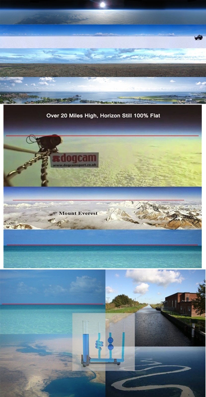 Можно легко доказать, что морской горизонт ровный, а Земля плоская. Например, Сэмюэль Роуботэм провёл эксперименты на реке Олд-Бедфорд. Сначала он стоял в канале, держа телескоп на высоте 8 дюймов над поверхностью воды. Затем его друг в лодке с флагом высотой 5 футов проплыл 6 миль. Вода в канале была совершенно плоской на протяжении 6 миль. На шарообразной Земле лодка и флаг должны были исчезнуть.