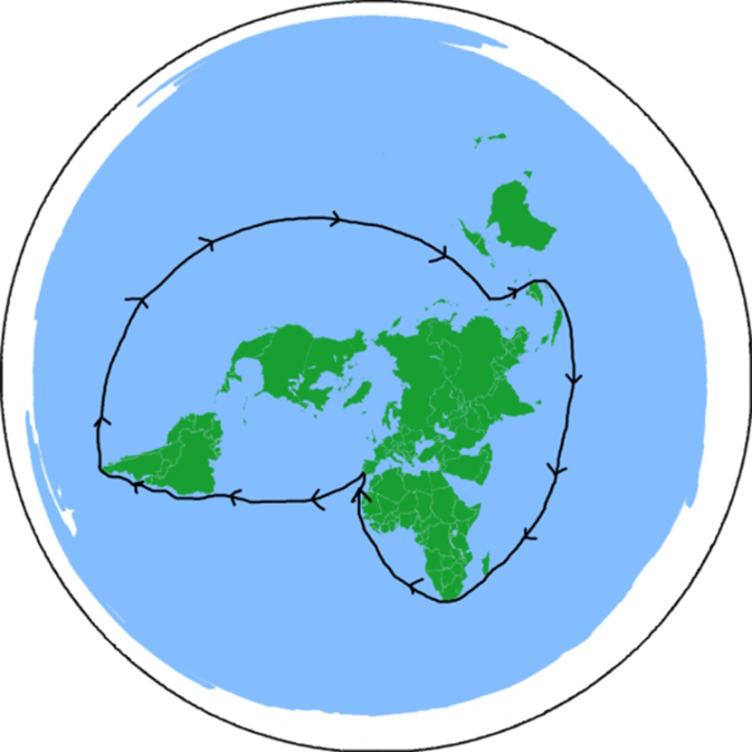 На плоской Земле отсутствуют «Восток», «Запад», «Юг». Северный полюс является единственной доказанной фиксированной точкой. Направление на «Юг» – это прямые линии, идущие в разные стороны от полюса. «Восток» и «Запад» – это концентрические окружности под постоянным углом 90 градусов к полюсу.
