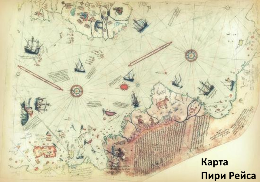 В 1929 году в стамбульском дворце Топкапы нашли карту мира. Документ сделан на коже газели и датирован 1513 годом. Её первым владельцем был адмирал Пири Рейс. Технологии быстрой и качественной выделки кожи – это середина 19 века (карту изготовили и сразу «нашли»).