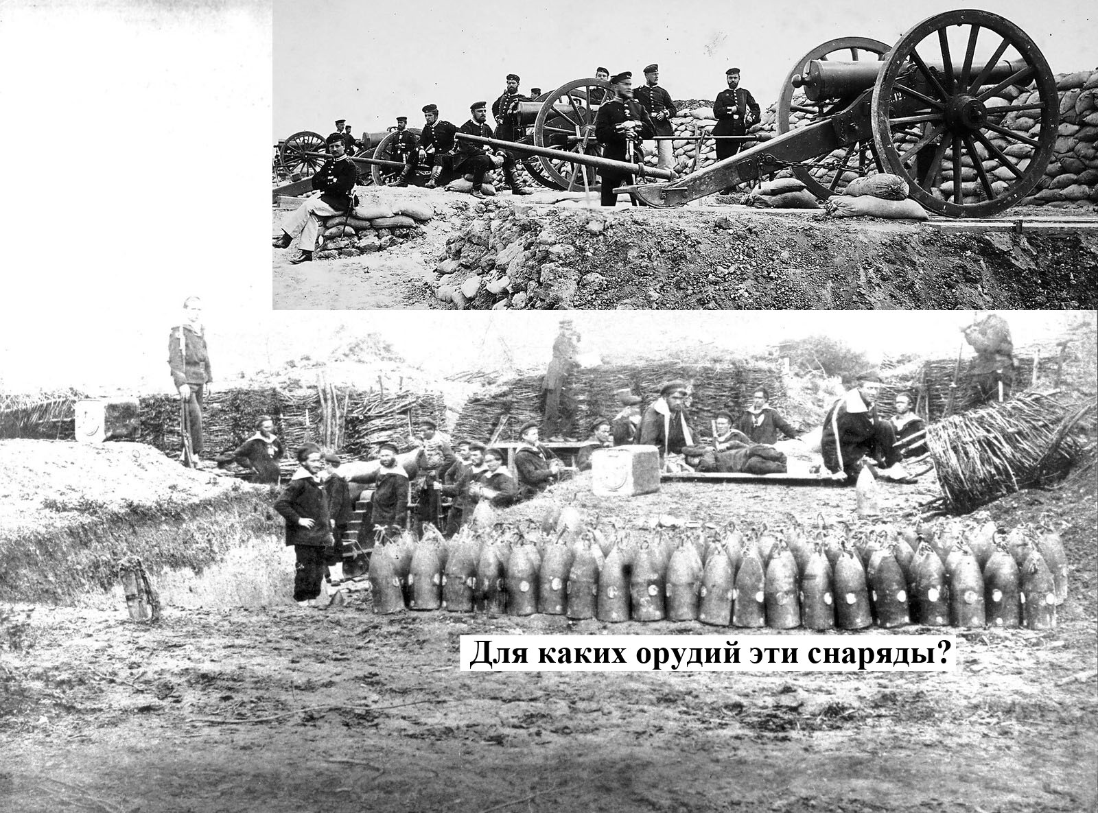 На фотографии показаны снаряды большого калибра. Для каких орудий они предназначены? Их диаметр больше наружного диаметра орудий, которые имеются на фотографиях.