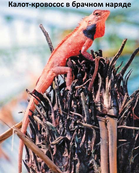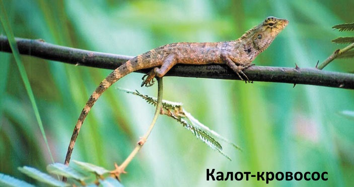 Обычным обитателем всех населённых пунктов Вьетнама является Калот-кровосос. Это один из представителей рептилий в тропиках, кто приспособился к жизни рядом с людьми (таких очень мало). Головы самцов в брачный период ярко-красные. Калот-кровосос кусает до крови тех, кто пытается взять его в руки. При этом его челюсти долго остаются сжатыми. Вероятно, за это он получил своё пугающее название.
