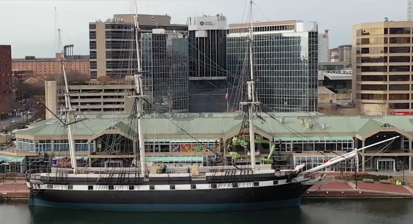 В центре Балтимора (США) находится Внутренняя гавань. В ней находится «USS Constellation». Это исторический военный корабль с деревянным корпусом, прочными мачтами и изящными рангоутами. Он был построен в Балтиморе в 1797 году.