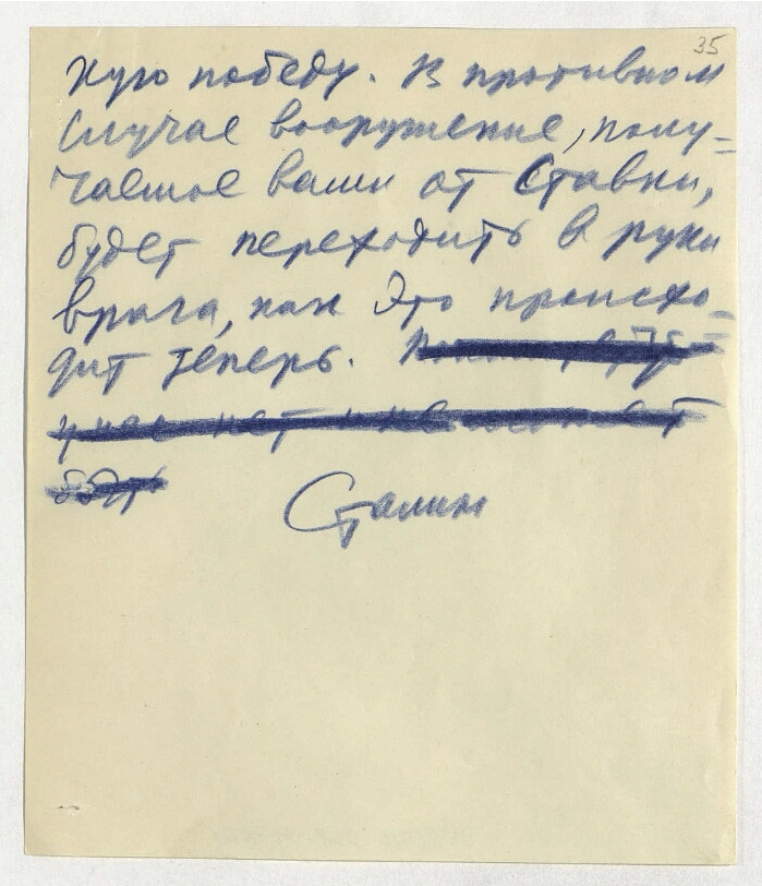 Первый «ляп» – отсутствие атрибутов на «документе». Второй «ляп» – документ написан в надуманном ключе. Так пишут историки. У военных – приказ. Третий «ляп» – документ якобы 1942-го года соответствует правилам 1956-го года. Сталин везде в своих работах, согласно правил грамматики того времени, пишет слитно: «нехватит», «нехватило», «нехватало», «нехватает». В этом документе: «не хватит».