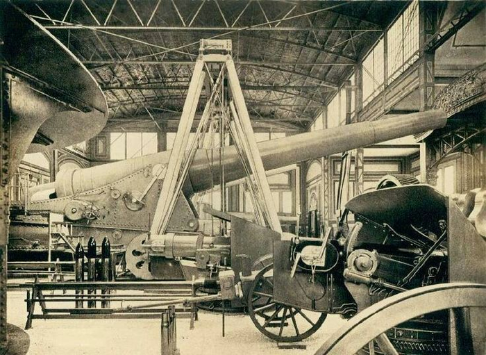 Немецкая фирма Крупп оформила артиллерийский павильон. Он обошёлся Германии в один миллион долларов. Там была представлена береговая пушка диаметром 42 см и длиной 33 калибра (14 метров). Она имела казённый заряд. Её вес – 122,4 тонны.