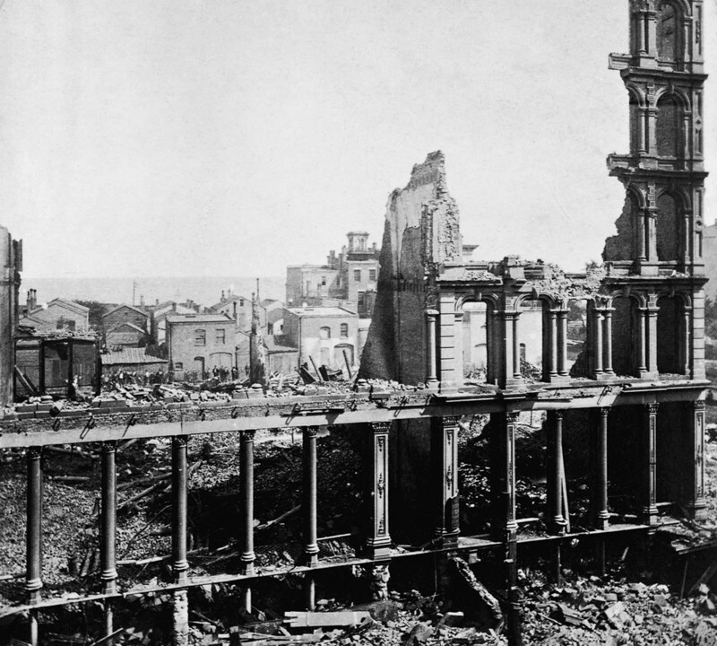 8-10 октября 1871 года произошла одна из самых масштабных катастроф 19 века. Она получила название Великого чикагского пожара. Он сжёг почти весь город. Была опустошена территория площадью 1052 гектара. Было уничтожено 18000 зданий, в том числе кирпичные и мраморные особняки. В огне была уничтожена большая часть города. Сотни его жителей погибли. Причина пожара осталась загадкой. Возможно, Великий пожар и уничтожил в Чикаго здания выставки?